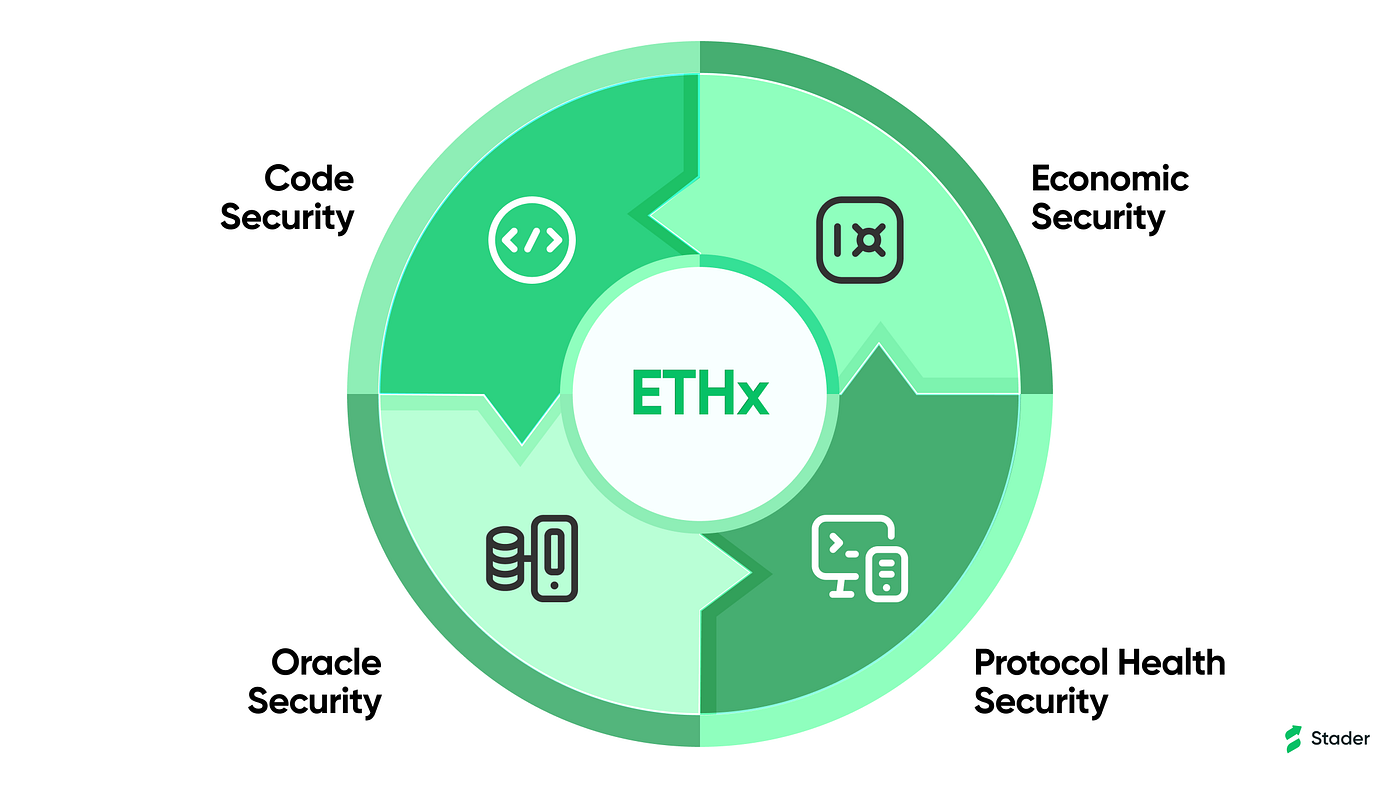 In this section, we will delve into the security and reliability of ETHx for both node operators and end users. For better understanding, we have divided ETHx security into four sections: code security, economic security, protocol health security, and oracle security.
