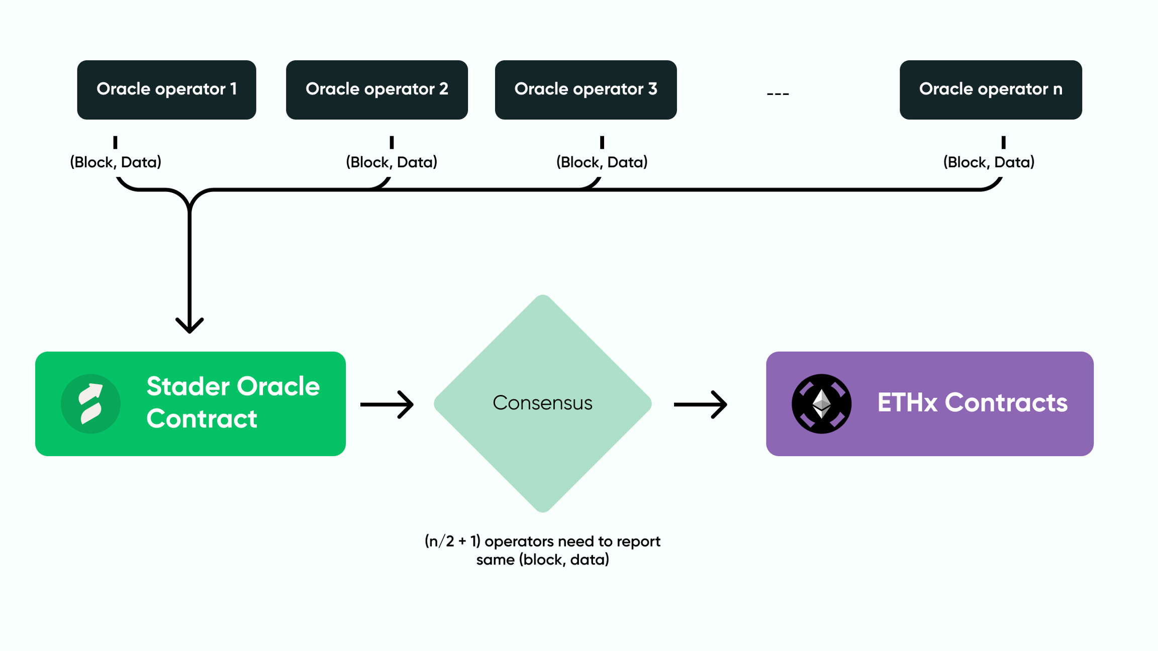 Ethereum started as a proof-of-work blockchain and, in recent years, transitioned into a proof-of-stake blockchain. At its core, the two blockchains, Execution Layer and Consensus Layer, form the Ethereum network. The execution layer holds the contract data, and the consensus layer holds staking information (regarding validators). ETHx smart contracts make decisions based on the data from the consensus layer. Hence, Oracles are needed to bridge this gap by fetching validator data from the Consensus Layer and supplying it to the Execution Layer.